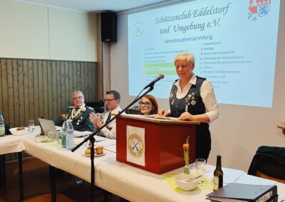 Am Freitag, den 6. Februar 2026, kamen die Mitglieder des Schützenclub Eddelstorf u. Umgebung e.V. zur diesjährigen Jahreshauptversammlung zusammen. Es war die erste Versammlung unter der Regie unserer neuen Vereinspräsidentin Mella Weber. Mella führte souverän durch die Tagesordnung und moderierte die Sitzung mit Bravour.